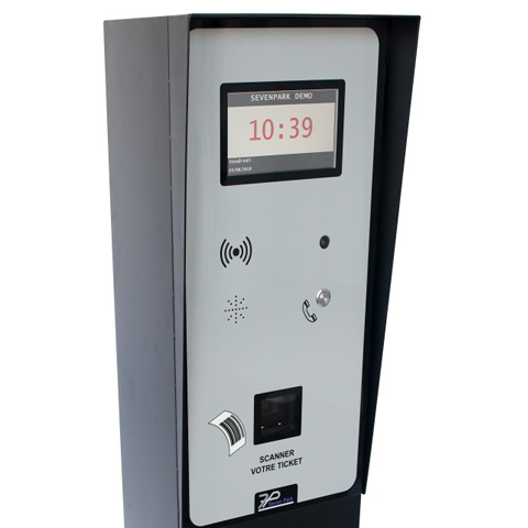 La borne de sortie Seven Park permet la sortie de l’usager. Sur présence d’un véhicule devant la borne, l’utilisateur présente le ticket devant le lecteur code barre. Le code est décrypté par notre algorithme afin de vérifier sa validation.